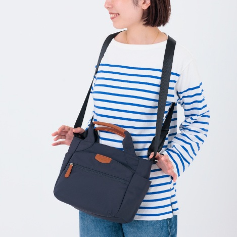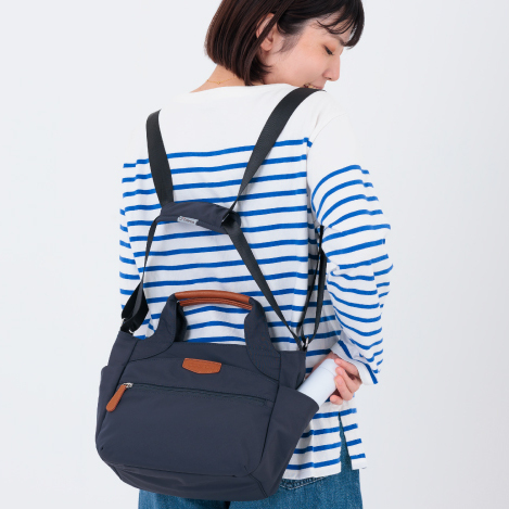 特許取得のベルトの構造でショルダー、リュック、前抱えなど自在に変身することができる5wayバッグ。