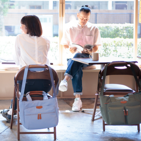 リピーターの多いコアルーバッグは、使ってみると納得の楽さ。会場では特に「前抱え」の重さ分散効果を体験してみてください。たったこれだけで?と驚くほどシンプルな仕組み。普段お使いのショルダーバッグの次世代型進化バージョンです。シンプルなので見た目もさほど変わらず便利になるだけ、ラクになるだけ。
